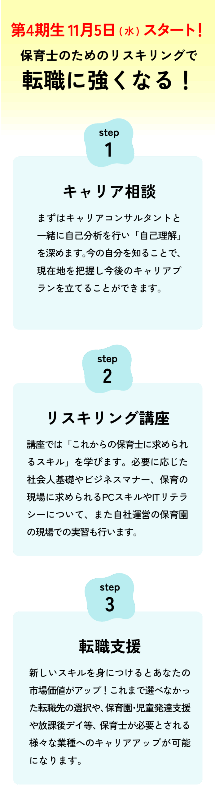 【第4期スタート!】輝きたい保育士のためのリスキリング受講生募集【11/5(水)】
