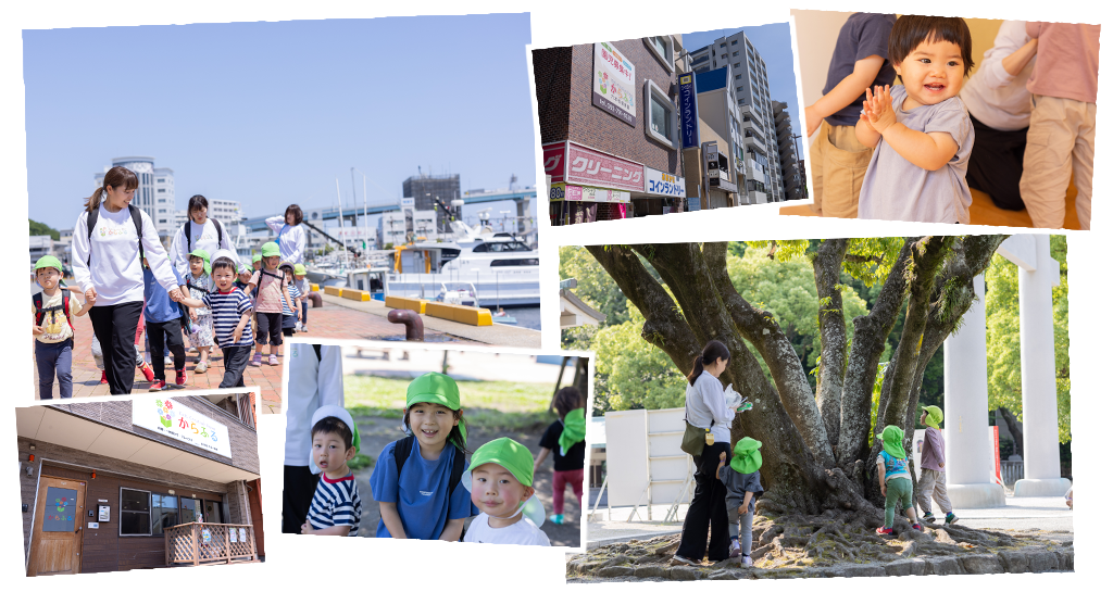 港園は港のそばの保育園なので、近くには海と船が見える公園があります。六本松園は、徒歩2分の距離に護国神社があり、自然や公園が充実しています。