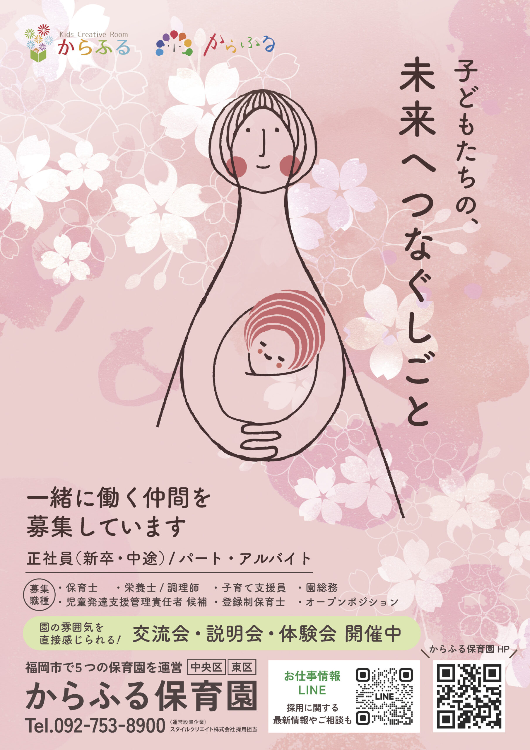 からふる保育園が大切にしている、子どもたちの未来を共につくりつなげていきたい。 という想いを、より多くの方に届けるために、通年採用ポスターを新たに制作しました。
