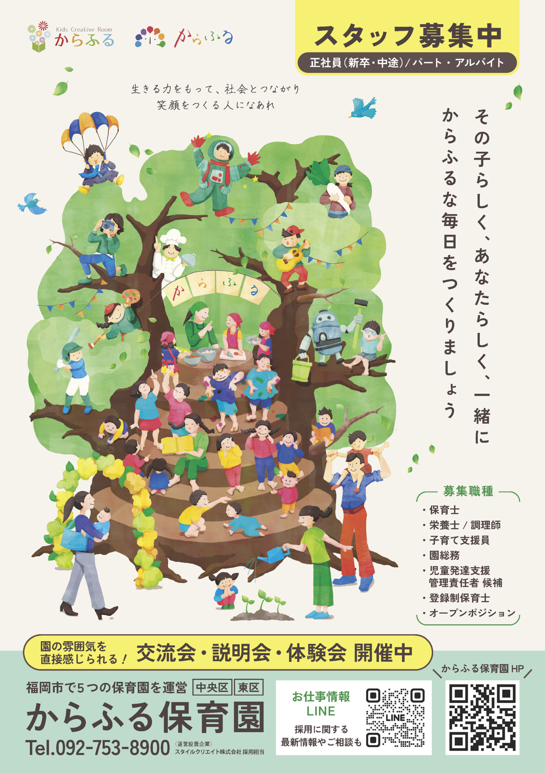 からふる保育園が大切にしている、子どもたちの未来を共につくりつなげていきたい。 という想いを、より多くの方に届けるために、通年採用ポスターを新たに制作しました。