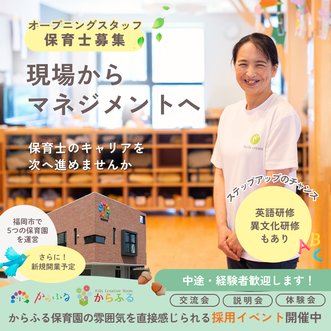 スタイルクリエイトは、今後の新規開業予定を見据え、保育事業の中核を担う正社員採用を行います。