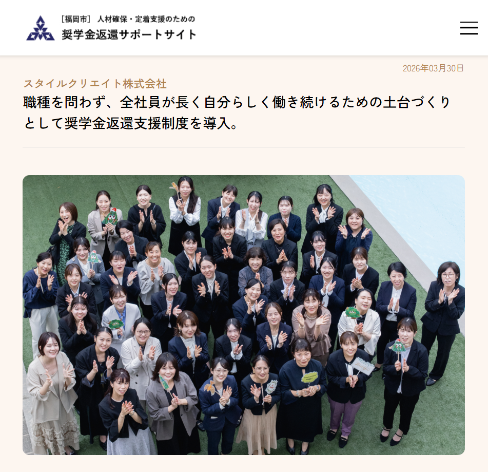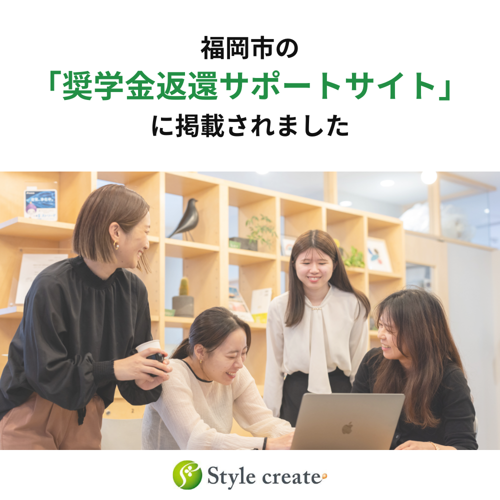 スタイルクリエイト株式会社では、福岡市が取り組む「奨学金返還支援制度」を導入し社員一人ひとりが安心して働き続けられる環境づくりに取り組んでいます。